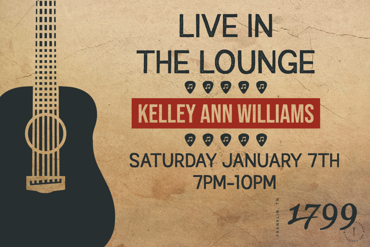 Live Music in 1799 Lounge, featuring Kelley Ann Williams – Guitar & Vocals